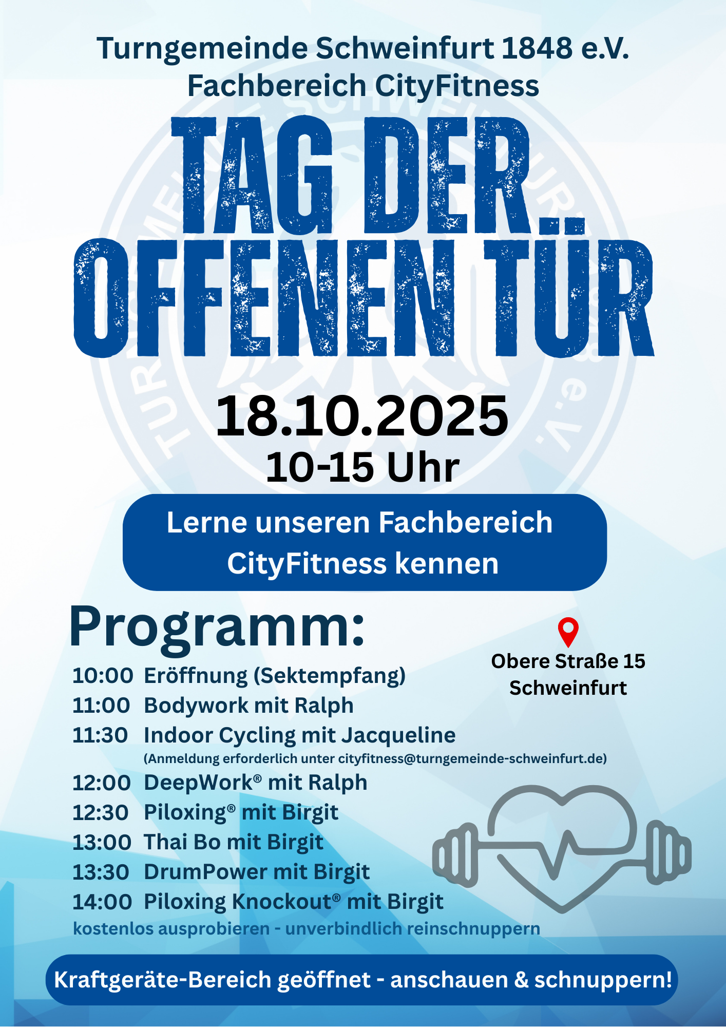 CityFitness ist ab 01.07.2025 der Turngemeinde Schweinfurt 1848 e.V. Mit großer Freude dürfen wir verkünden, dass CityFitness nun ein offizieller Fachbereich…